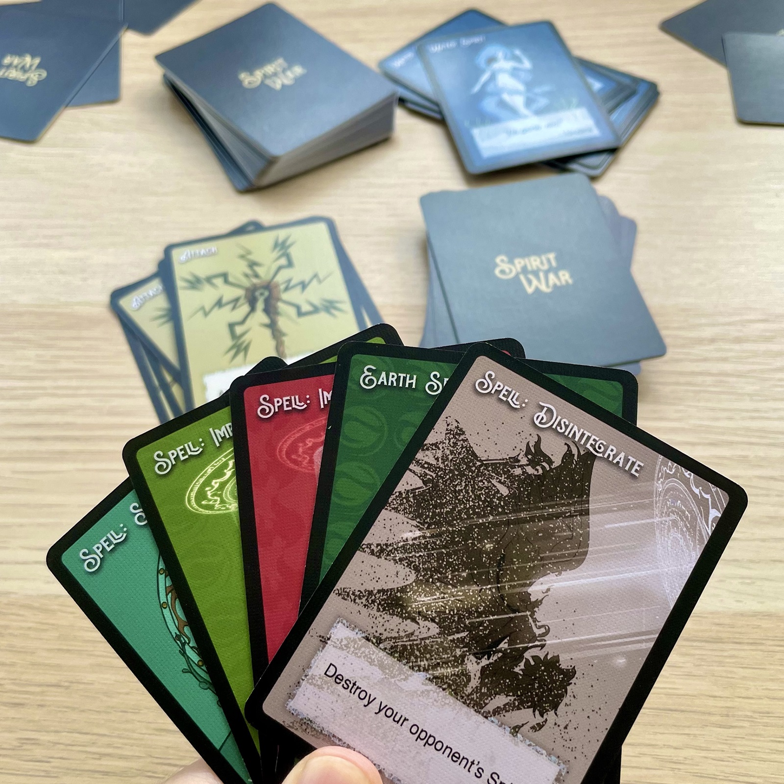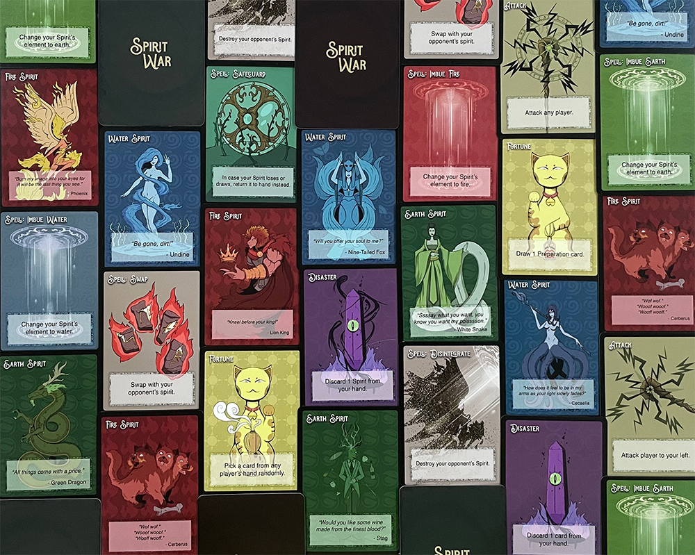 Spirit War is a luck-based card game where players engage in battle, based on the system of tri-elements, to be the last one standing. Don’t be fooled by its initial simplicity, as this game possesses the potential to evolve into a captivating and strategic mind game. Even with multiple playthroughs, the excitement never wanes, offering endless enjoyment for all players of all ages.